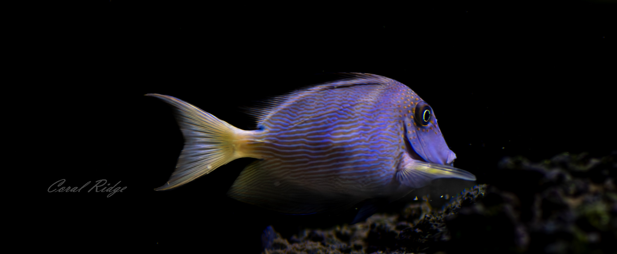 Coloration: The Orange Stripe Bristletooth Tang is the only member of the genus to be found extending as far as the Red Sea. It has orange spots along an olive body with wavy blue lines extending head to tail.